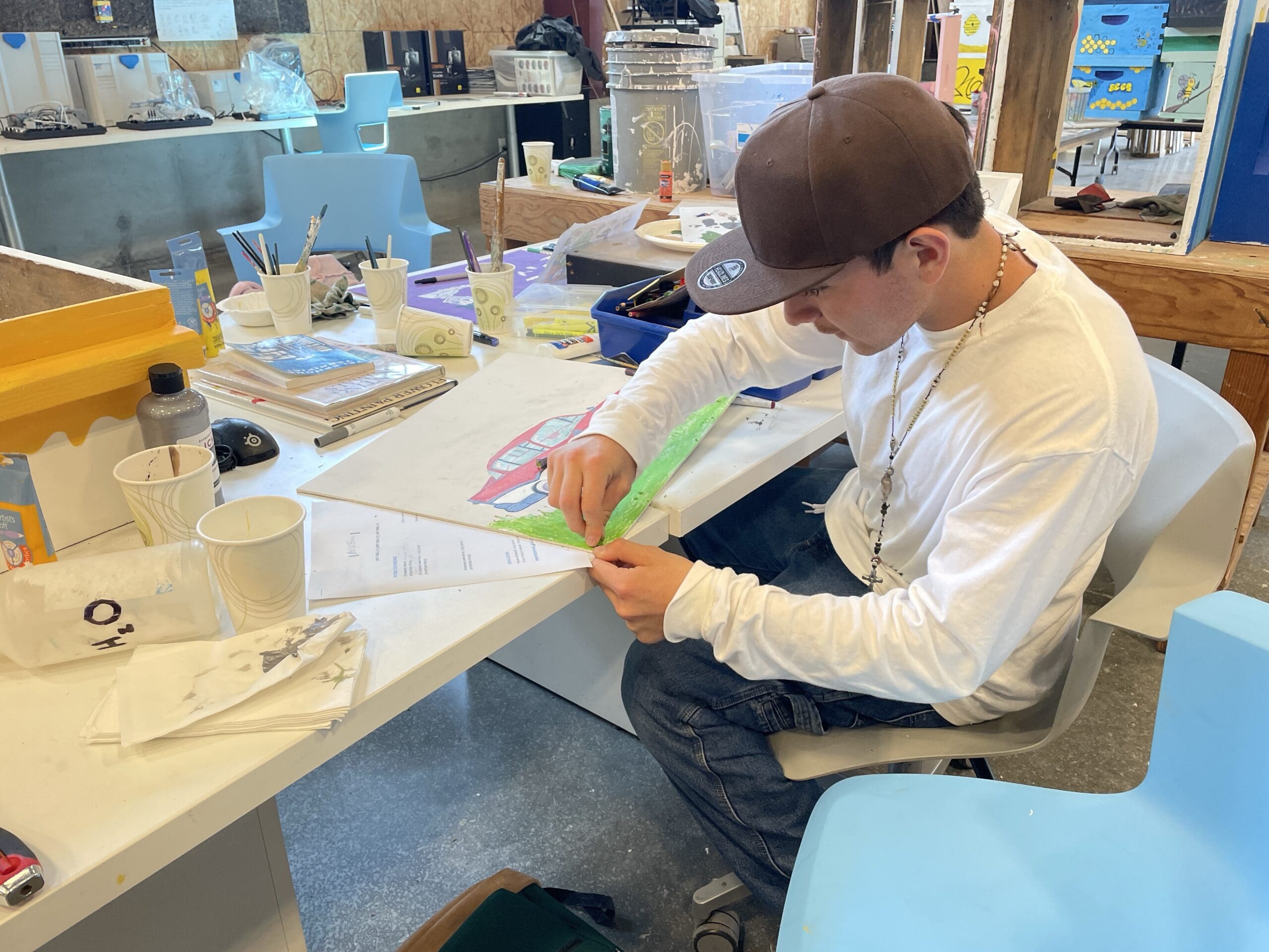 Our students are no strangers to adversity, and many have faced incredible hardship, from incarceration to hunger and poverty, before finding their community at Rancho Cielo. Via partnerships with Harmony at Home and Monterey County Behavioral Health, we have onsite mental health professionals who provide students with individual counseling, addressing emotional distress, trauma and other challenges. Our Arts Program introduces students to creative forms of self-expression through various art mediums and techniques. Importantly, both programs play a powerful role in healing, exploring feelings and processing experiences while developing self-awareness, resilience and a positive sense of self.