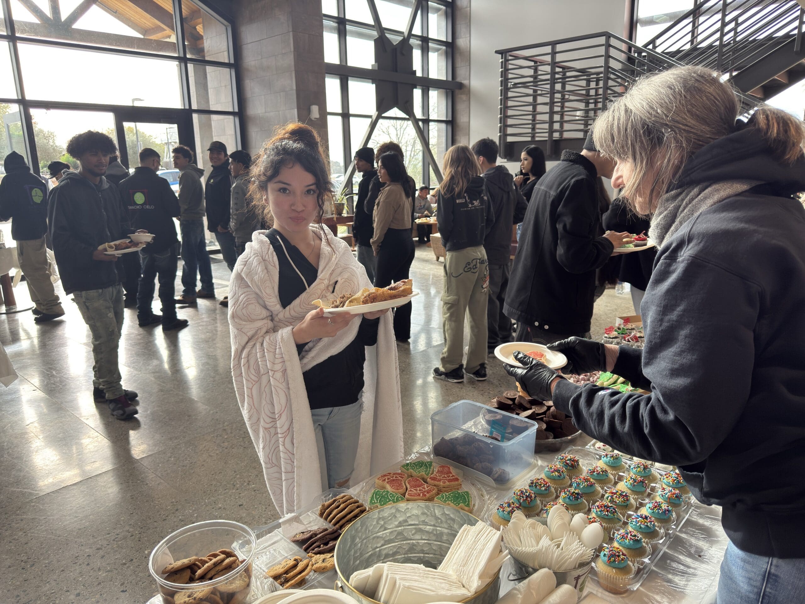 In addition to the practical reasons behind the gifts, they’re super stylish! Also, students’ bellies were stuffed with breakfast burritos and a holiday potluck lunch that included everything from homemade gnocchi and carnitas tacos to pizza, fried chicken and a smorgasbord of treats!