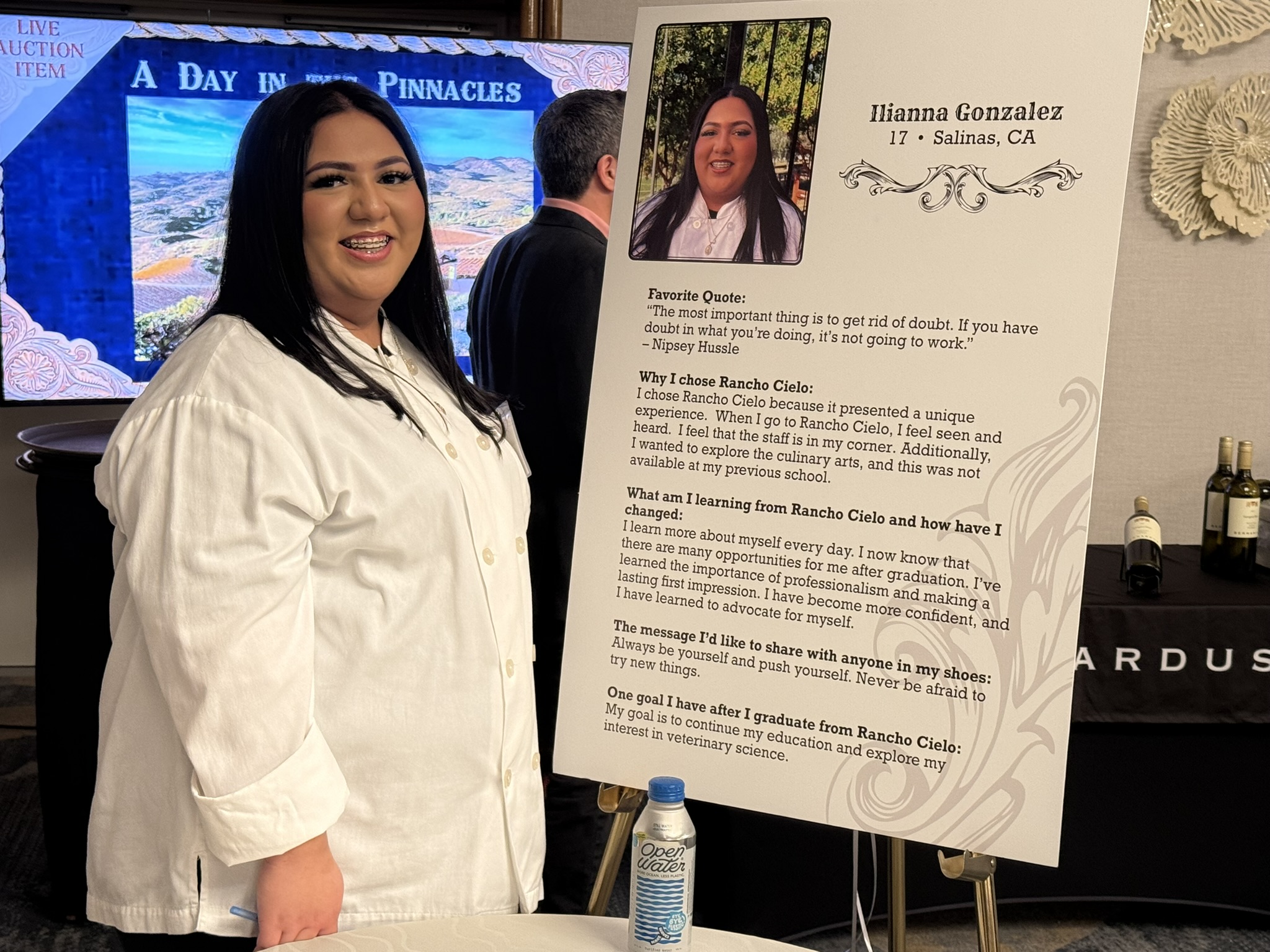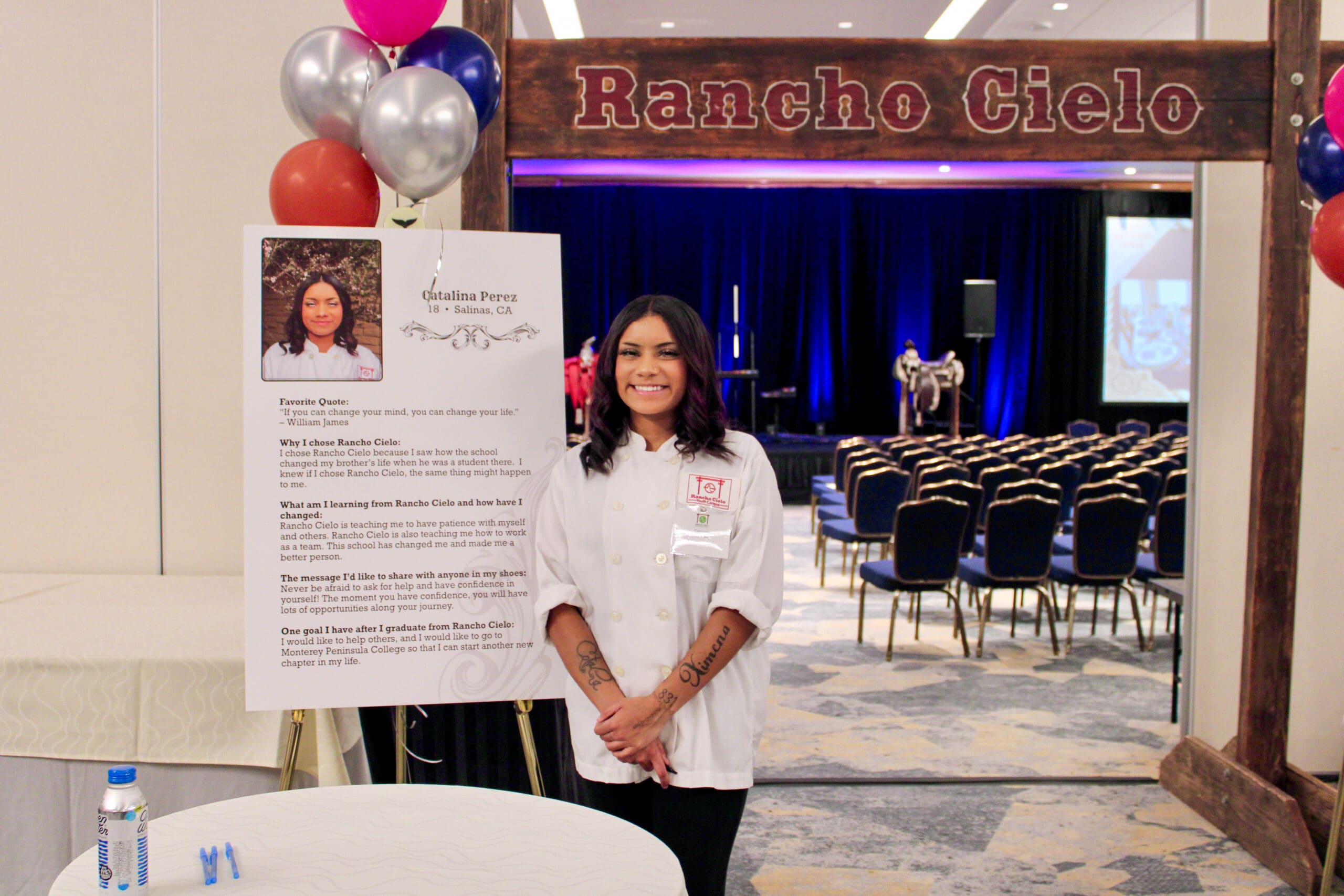Eighteen-year-old DCA student Catalina “Cat” Perez delivered a moving speech to several hundred attendees, sharing her struggles before finding Rancho Cielo. She credited her baby daughter as the inspiration that helped her push through hardship.