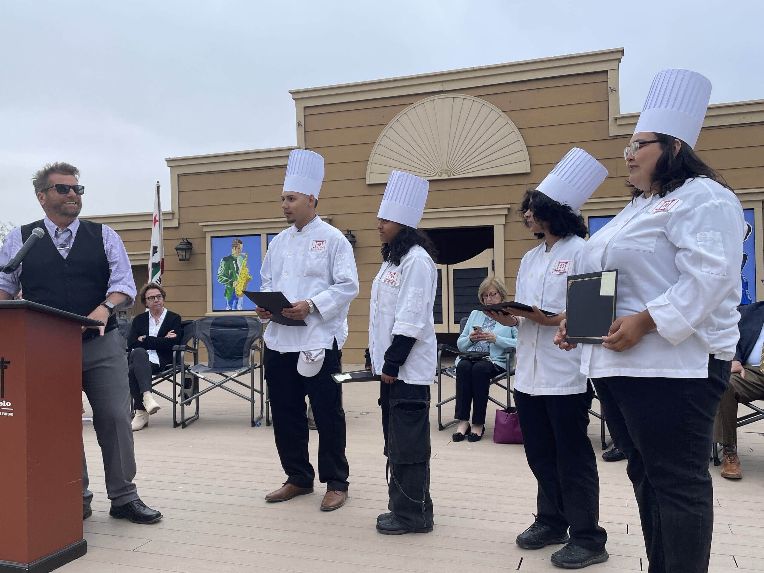 Meanwhile, the trio of student speakers was one of the event’s highlights. Kaitlyn Davis (Monterey Peninsula College Hospitality Completion), Tony Campos (Advanced Front House Certificate) and Myndy Flores (Front House High Achievement Certificate and Monterey Peninsula College Hospitality Completion) spoke earnestly through waves of emotions.